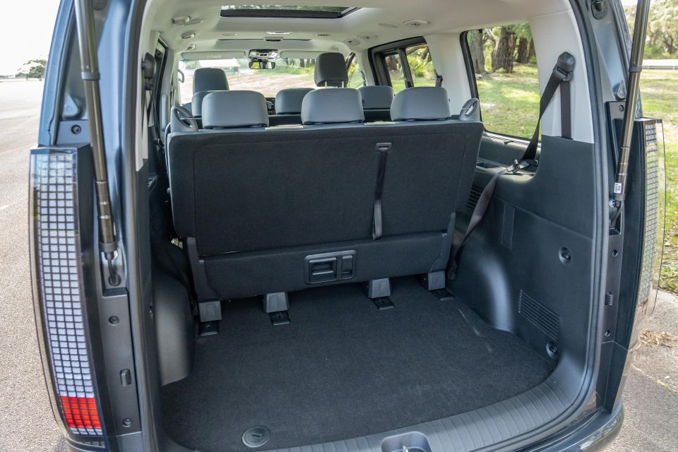 In terms of towing, the Staria has a braked-trailer rating of 2500kg – 300kg greater than the Palisade’s cap. Hyundai charges extra for its tow accessory kit.