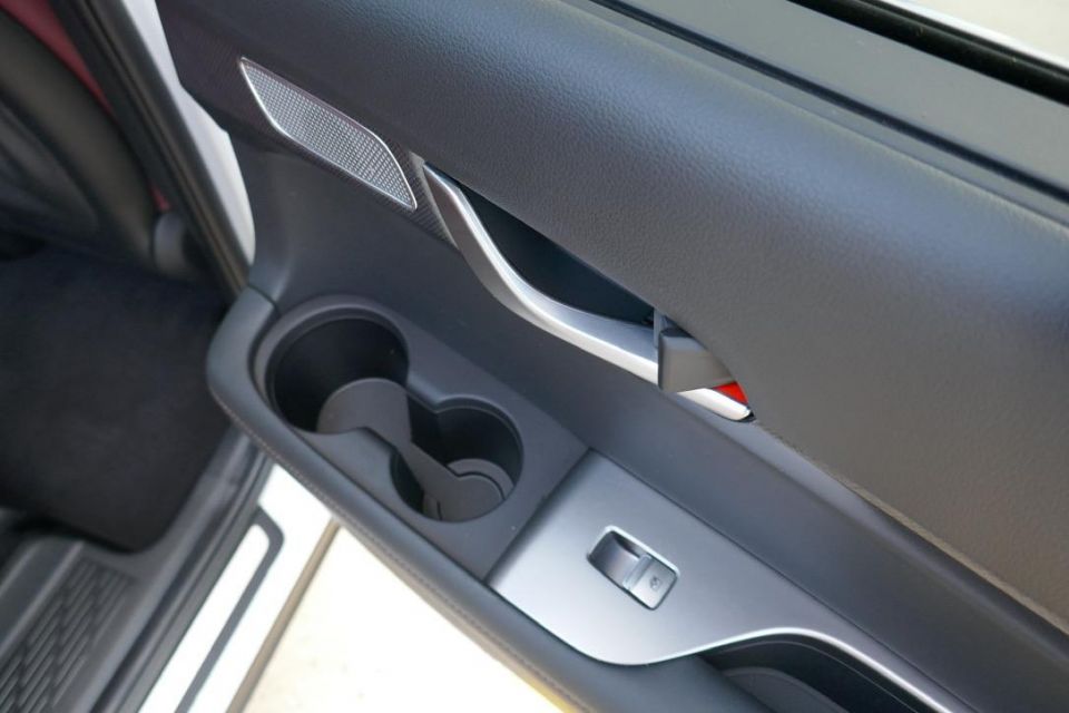 Storage options are substantial: my favourite stat being the car’s 16 cupholders. Everyone can have two drinks, guys! The below picture of the back door demonstrates the car’s user-friendliness.
