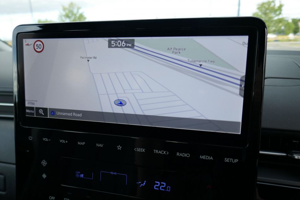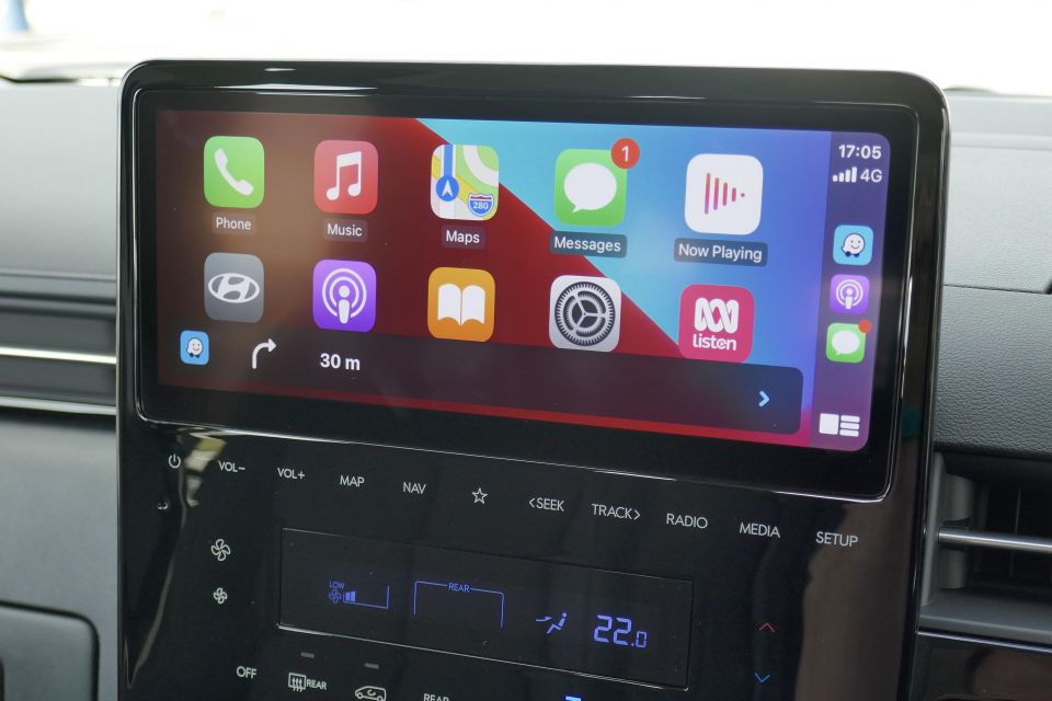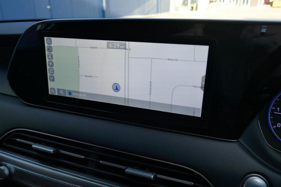 The large centre touchscreen runs the same infotainment system as the Staria, but in the Palisade is paired up to a greatly superior sound system. Not only is the touchscreen large, but it’s very responsive to inputs and light on lag.