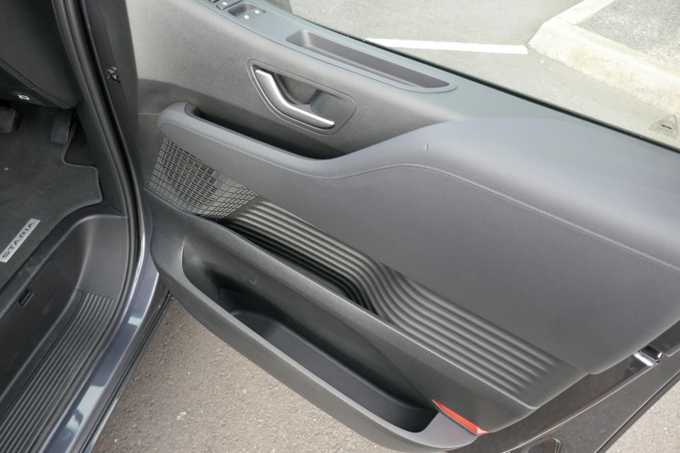 The bulky centre console is only half as big as it looks, which is disappointing, and because the centre tunnel sits below your hip height unlike in the Palisade, you feel less bedded-down in the Staria – you sit ‘on’ it rather than ‘in’ it. But again, just look at those windows!