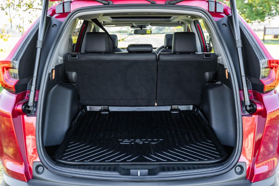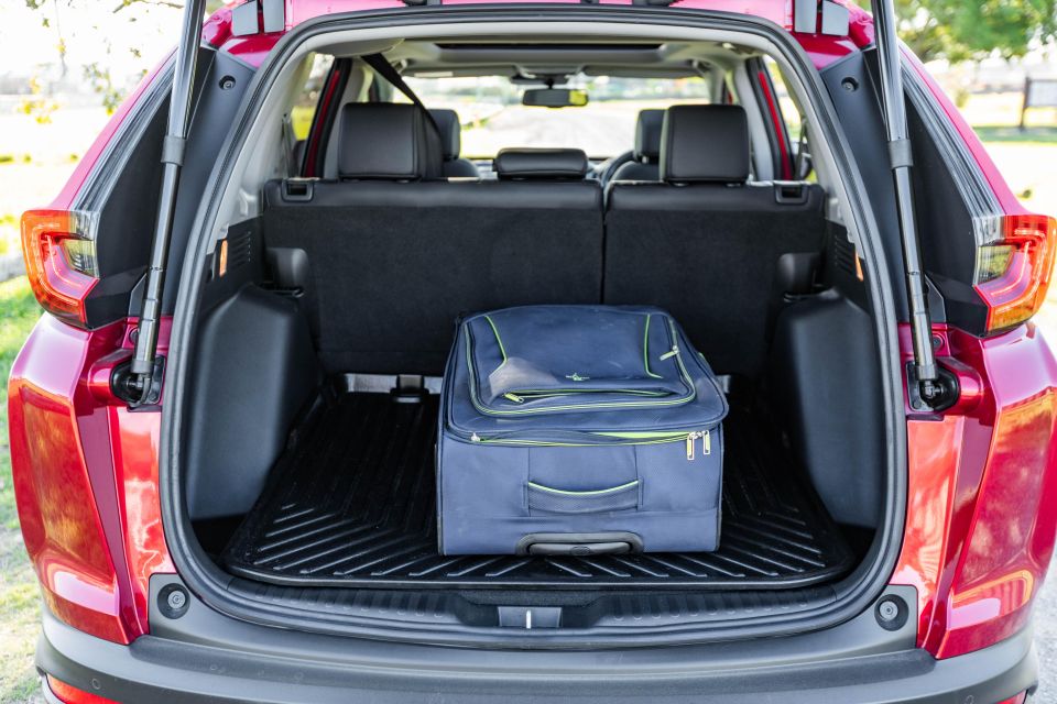 The rear of the cabin is supremely spacious thanks to the longer wheelbase of the latest generation. You’ll find air vents and two USB-A outlets at the rear of the centre console, plus a bottle holder in each door albeit no can holder like in the CR-V. There’s a fold-down centre armrest, plus three top-tether and two ISOFIX anchor points for child seats.