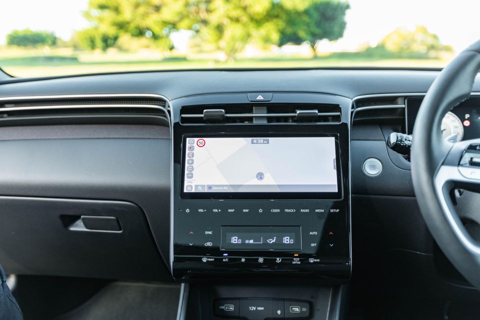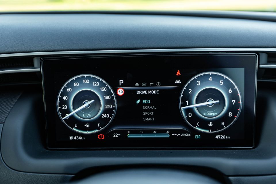 The instrument cluster isn’t as slick and modern as the Tucson’s, but it’s still predominantly digital and has a neat layout and clear graphics.
