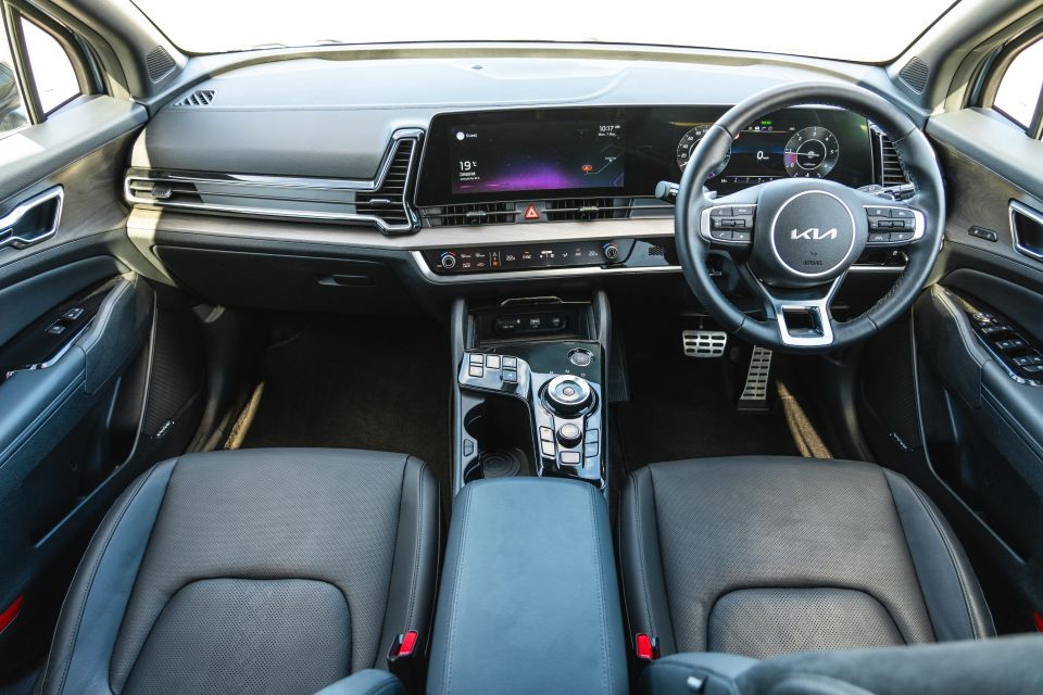 Only the Hyundai has a heated steering wheel and rear seats, but the Kia counters with larger screens (12.3-inch compared to 10.25-inch), metal pedals as standard, and suede uppers on the leather-trimmed seats.