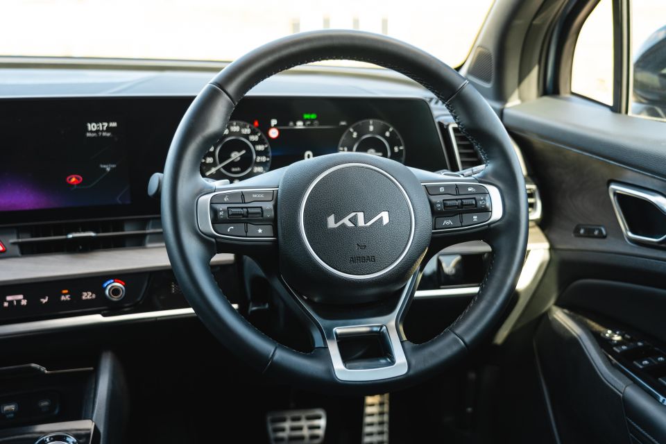 The Sportage, with its dual 12.3-inch displays and wing-shaped dashboard, makes a more immediate impact than its cousin when you get behind the wheel. It’s a really handsome design, and shares plenty with the flagship EV6.