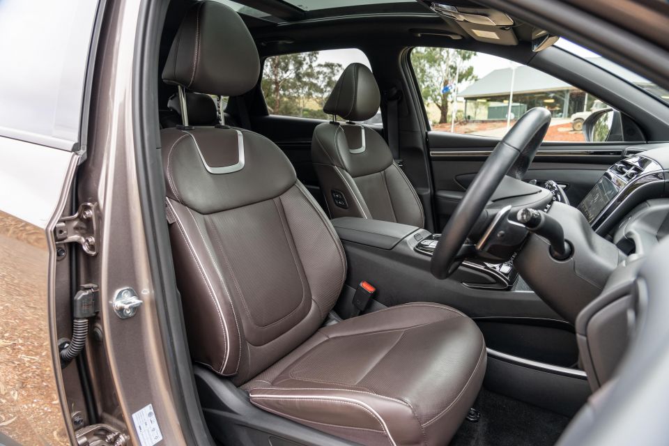 The Tucson has a great driving position, whether you’re tall or short. Everything falls within easy reach, and the view over that long bonnet is commanding like you’d expect of a mid-sized SUV.