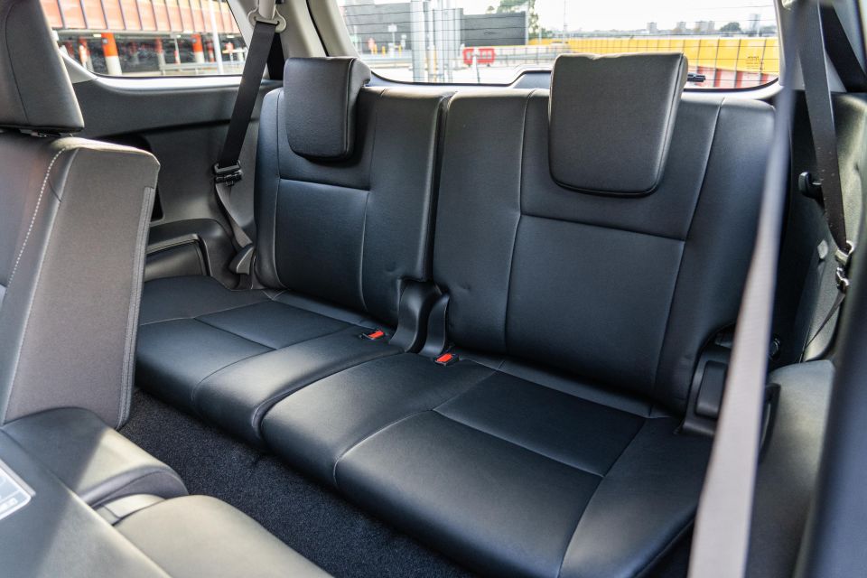 There are dual USB ports back there for long road trips, and the seat backrests recline to prioritise either third-row space or second-row comfort. The bench folds or tumbles forward 60/40.