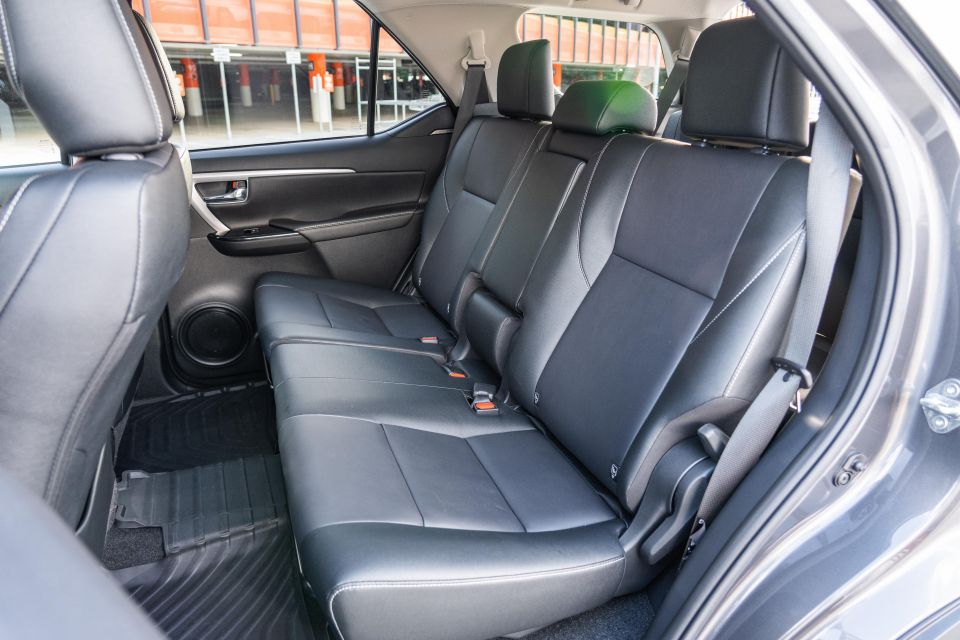 Rear seat space is fine, but nothing more. There’s marginally less legroom than is offered in the MU-X, and headroom is similar. Like the Isuzu, the Fortuner has roof-mounted air vents, but it lacks the USB ports of its rival, instead featuring a less useful 240V plug.
