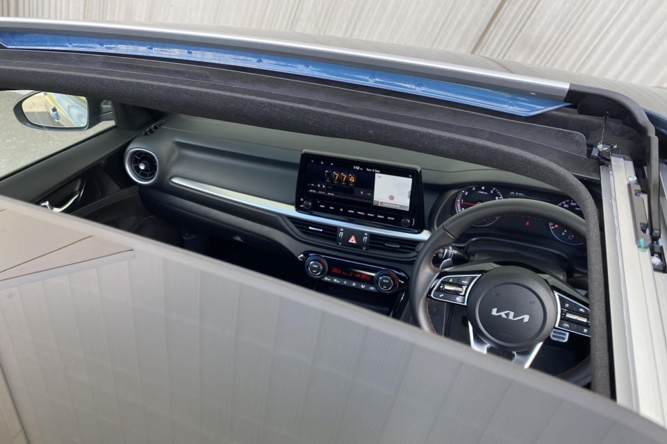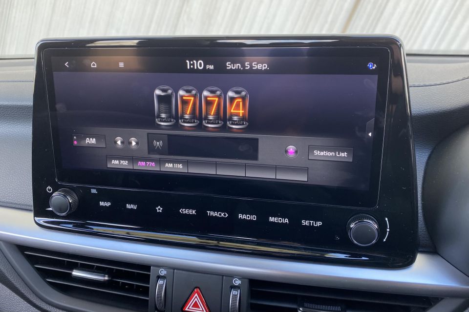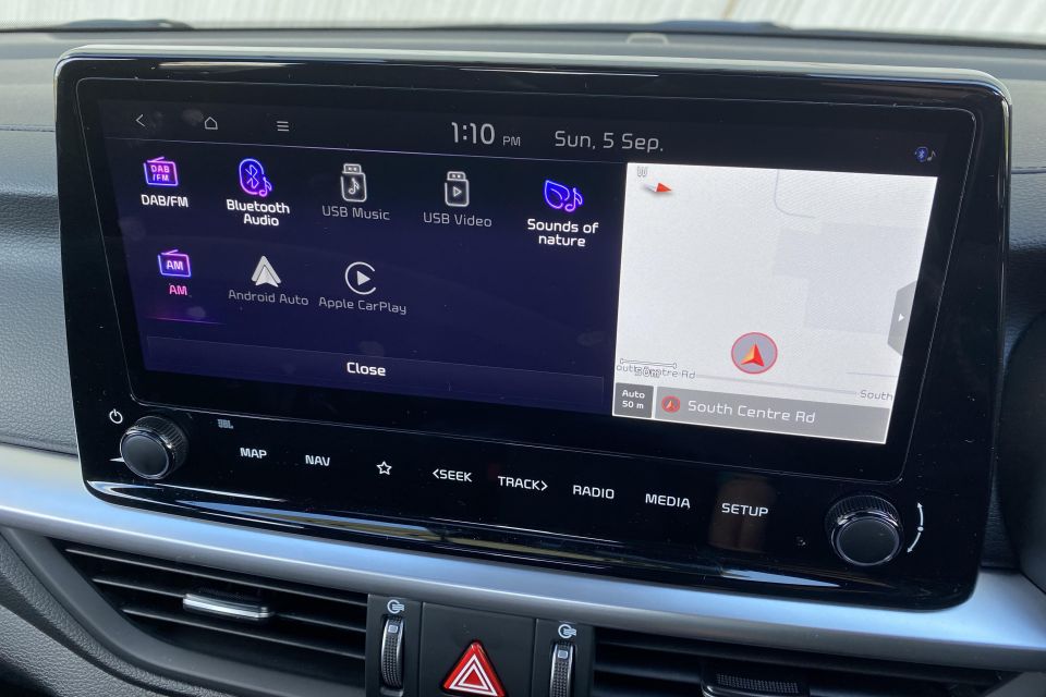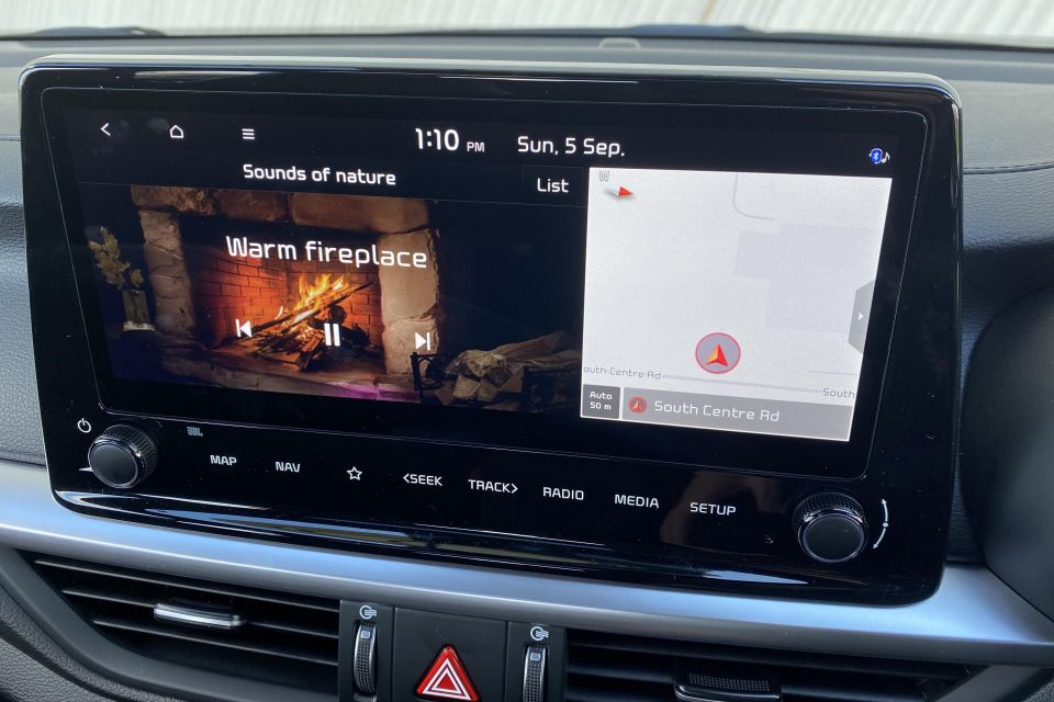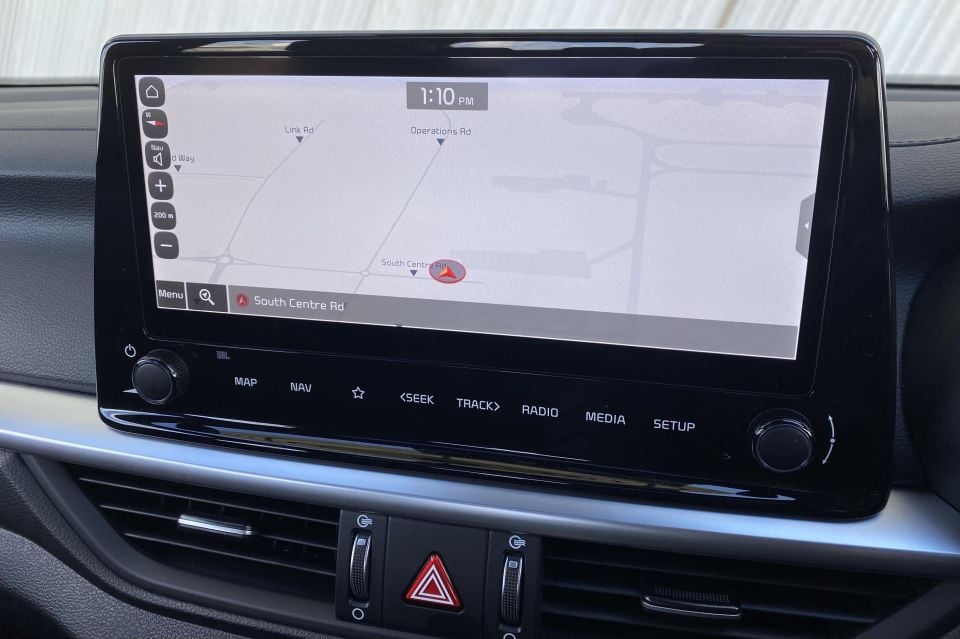 The 10.25-inch touchscreen in the Cerato is rolling out across the Hyundai and Kia range at the moment. With wired smartphone mirroring and factory navigation it has everything you need, though the trio of function buttons in the top-left corner of the screen are a bit of a reach.