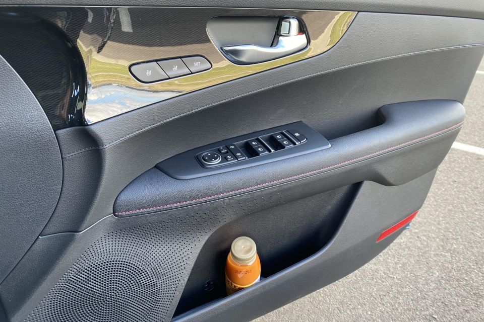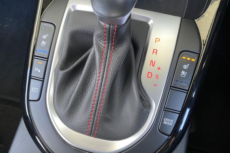 The front doors are topped with soft-touch trim, the dash has a matte finish instead of the shiny look of the Kia, and the tiny gear selector clicks positively into place.