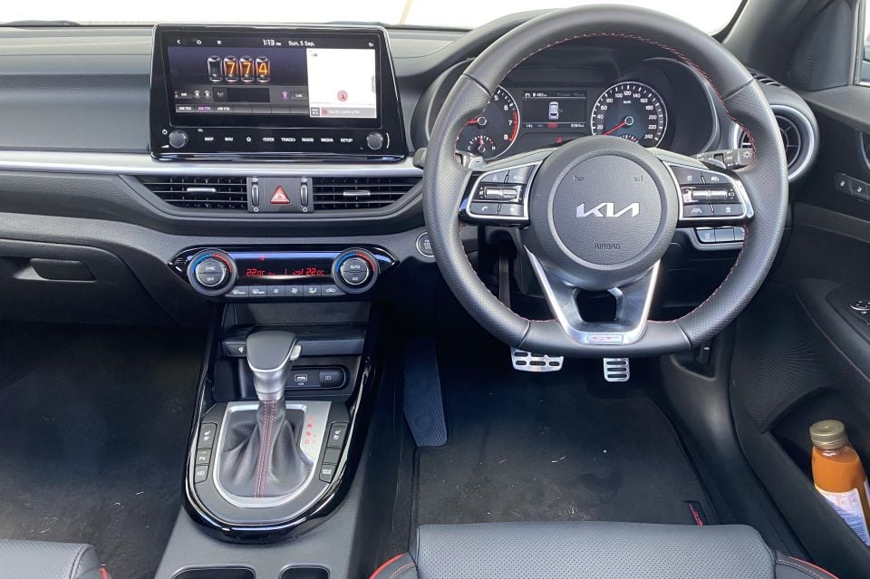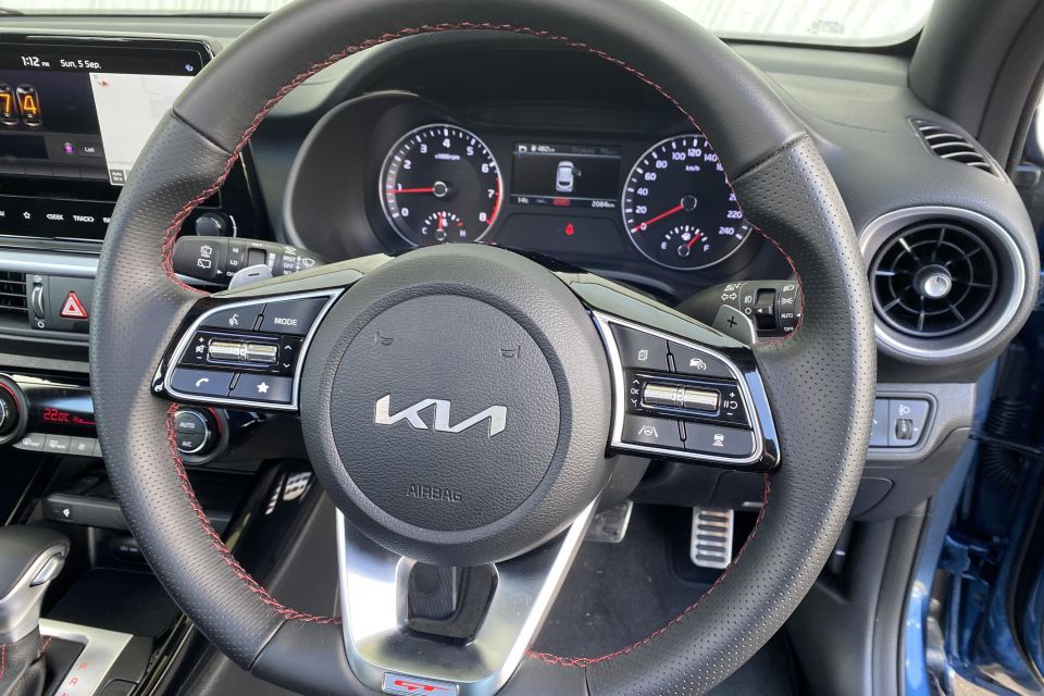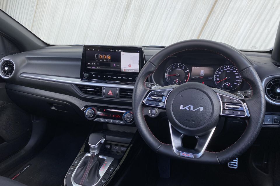 Unlike the Golf, the Cerato has a dual-clutch transmission. Strange times. It isn’t torque-converter-smooth off the mark, and can be a bit slow moving from drive to reverse, but the 2022 model’s setup feels smarter than the pre-update car.
