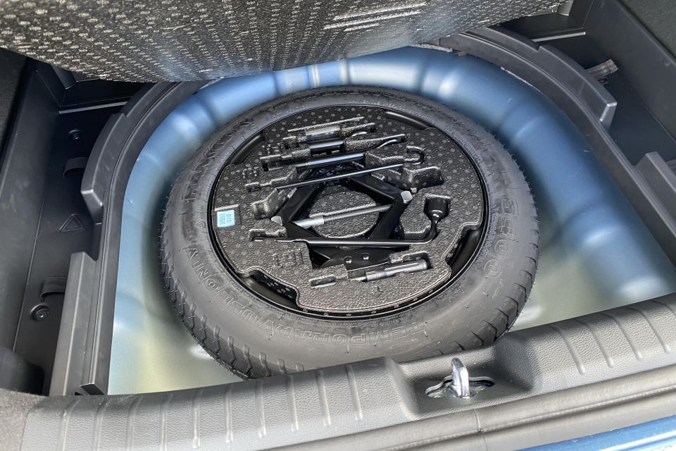 Boot space is 374L with the rear seats in place, and 1230L with them folded. The space itself is broad and practical, and there’s no major loading lip when you pop the boot using the Volkswagen badge. There’s a space-saver spare tyre under the floor.