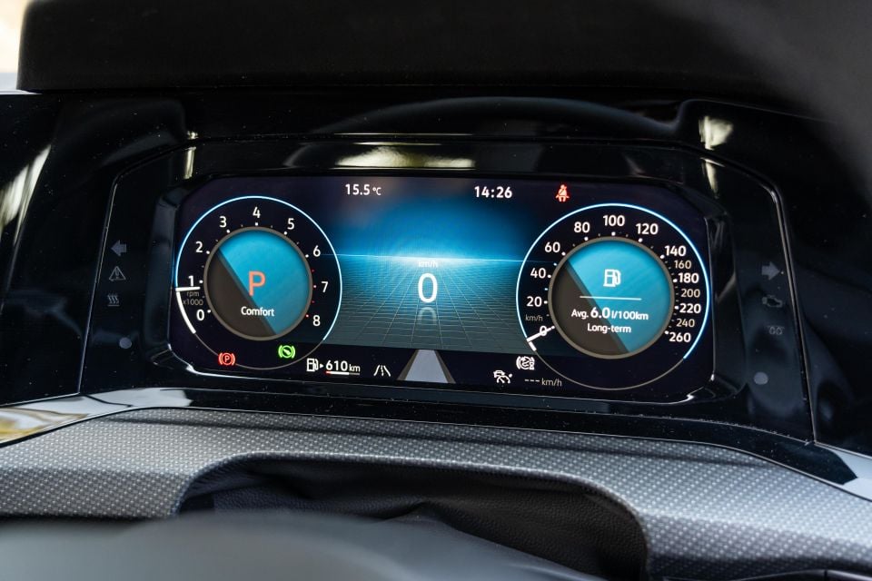 Claimed fuel economy is 5.8L/100km on the combined cycle, and the fuel tank holds 50L. The Golf drinks more expensive 95RON premium unleaded.