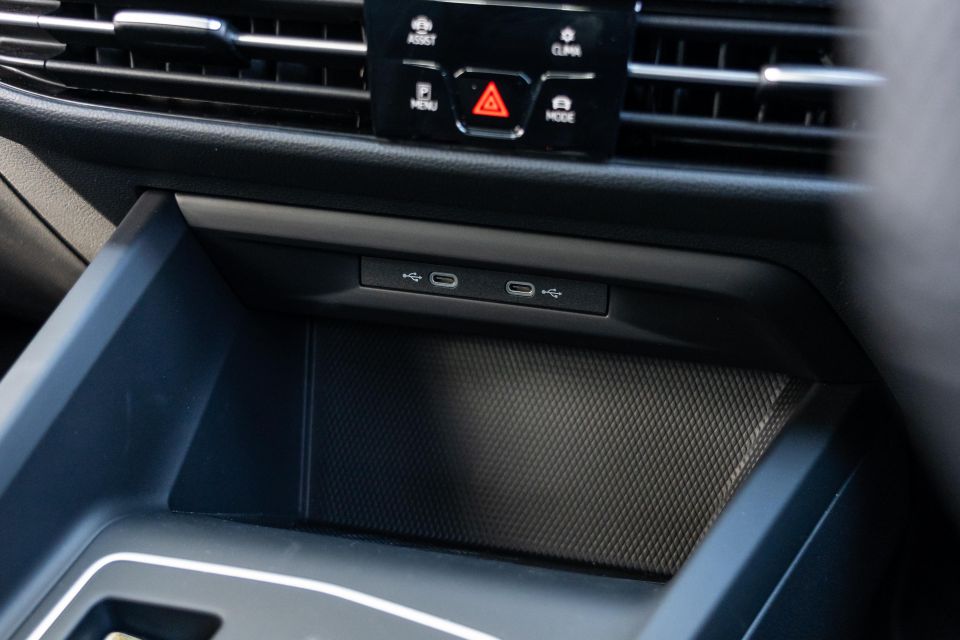 Down back the Cerato matches the Golf with air vents, a fold-down central armrest, and a USB charging port – although the port in the Kia is USB-A, not USB-C.