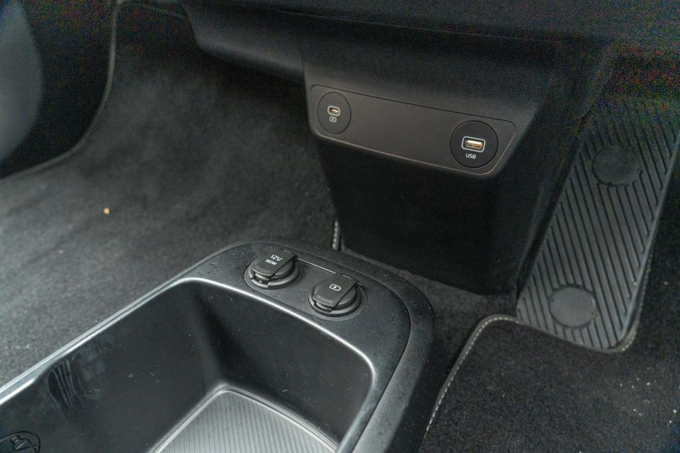 The wireless phone charging pad under the armrest is handy, and there’s an abundance of USB-A and USB-C ports for both front and rear passengers. With a proper three-pin plug under the rear seats, you’re even able to plug in a laptop.