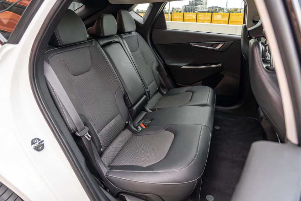 It’s a mixed bag in the second row. Rear legroom is accomodating enough for average-sized adults, but it’s a bit tight back there behind taller drivers. Headroom is better than expected given the panoramic glass roof and there’s space for kids or tall-ish teenagers, but adults will feel a bit cramped.
