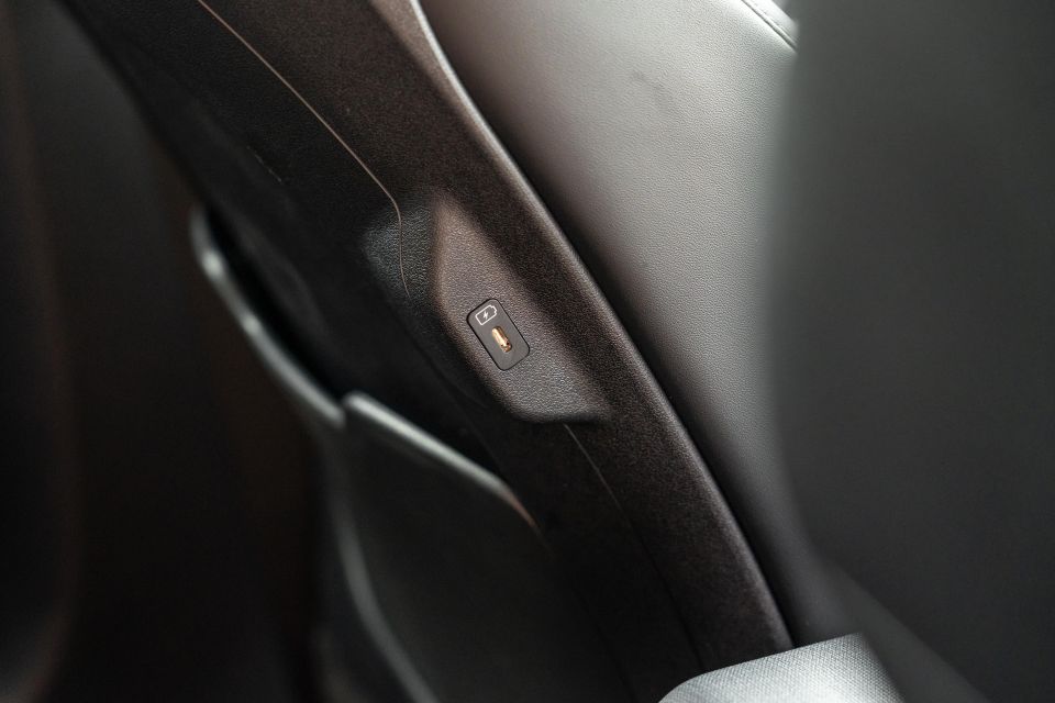 At first glance it looks like there are no air vents or USB chargers, because the back of the central island is empty. Look further though, and you’ll find USB-C plugs on the side of the front seats and air vents in the pillars ahead of the doors.