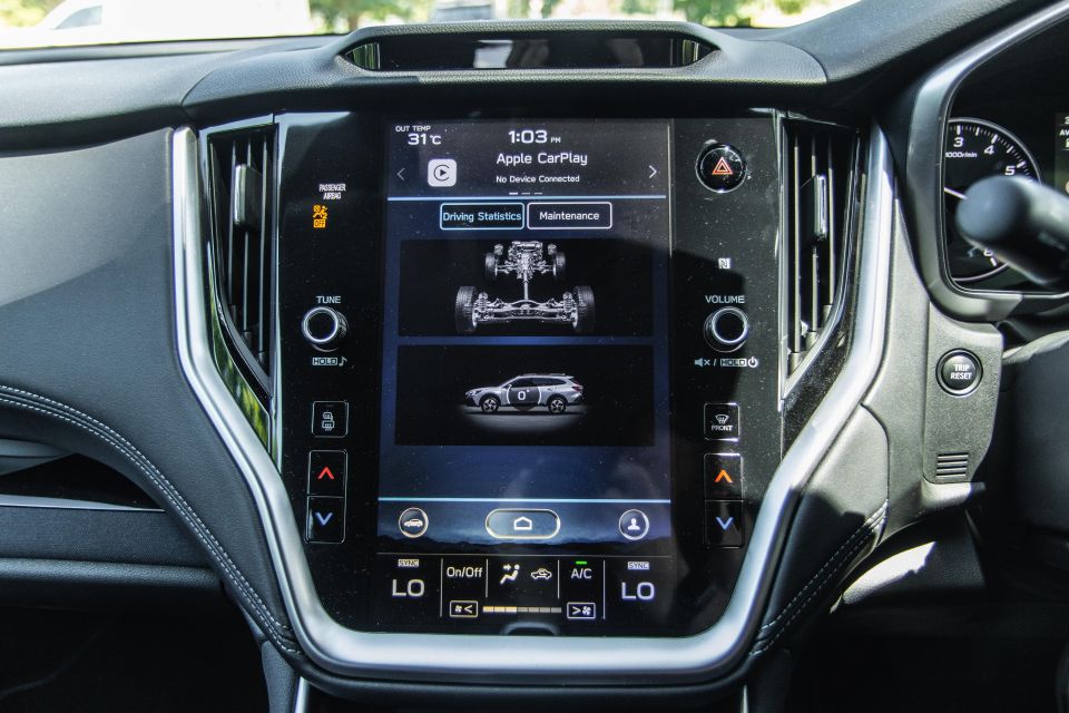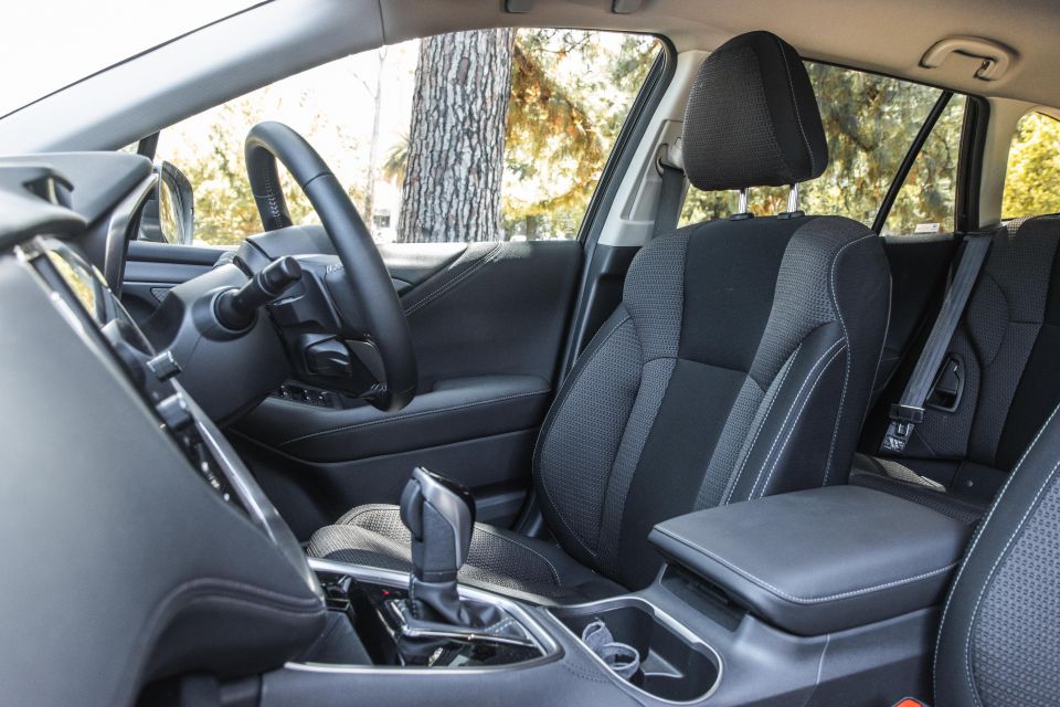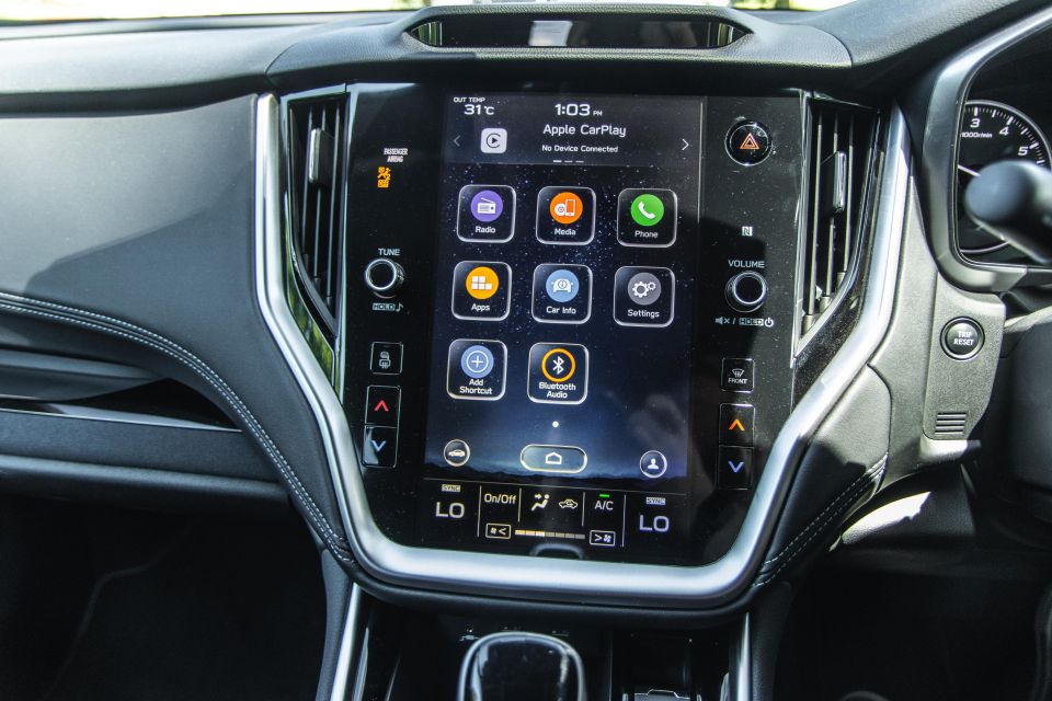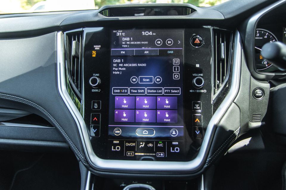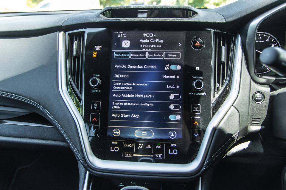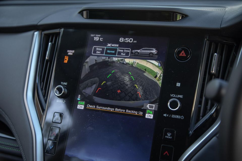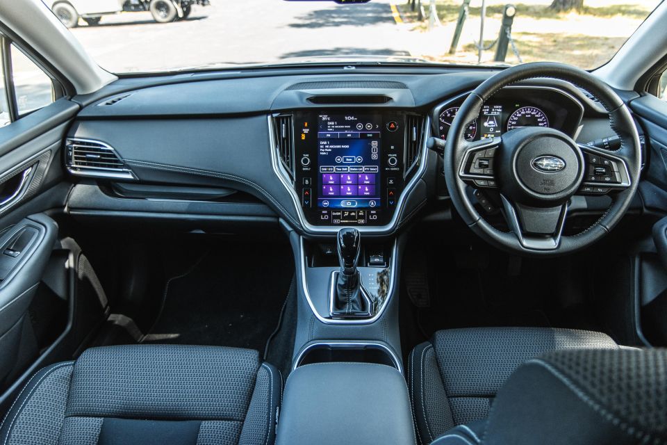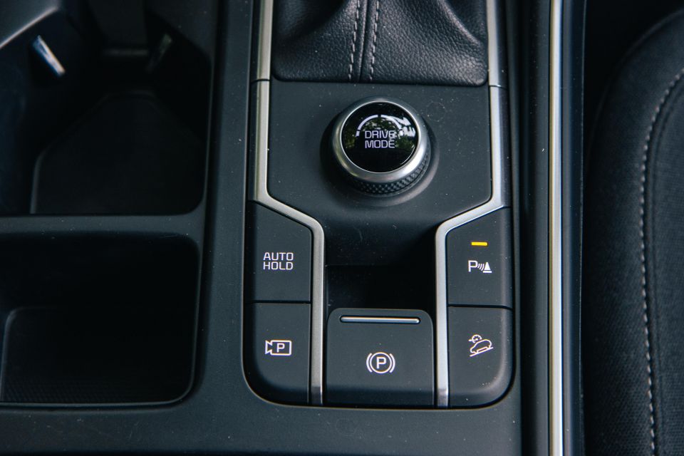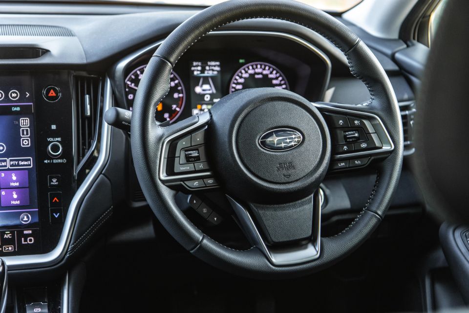 The gear shifter is trimmed in the same leather as the wheel and feels very sturdy, and sits alongside damped buttons (not screen menus as per the Outback) to control the electric park brake, Auto Hold function, rear camera, downhill slip control, and parking sensors.
