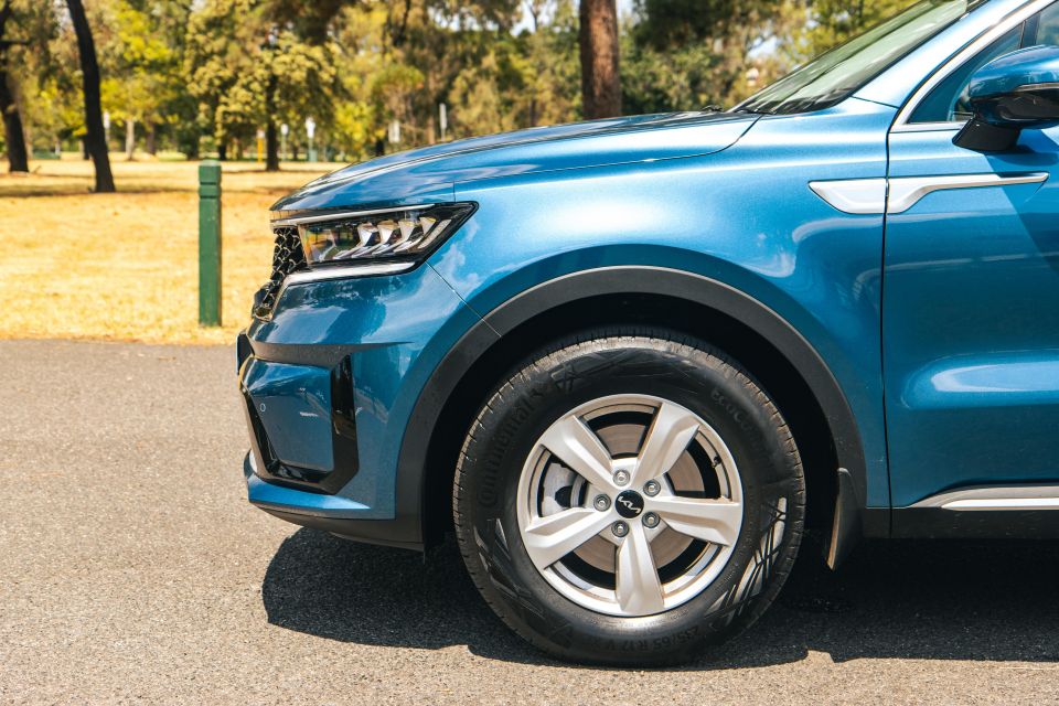 In terms of driving dynamics the Sorento is exactly what you want it to be: the new Hyundai-Kia platform offers a stiff base, and there’s excellent noise suppression and ride comfort. The smaller wheels mean more cushy tyre sidewall, and the springs and passive dampers maximise body control without removing the car’s ability to float over most corrugations nicely.
