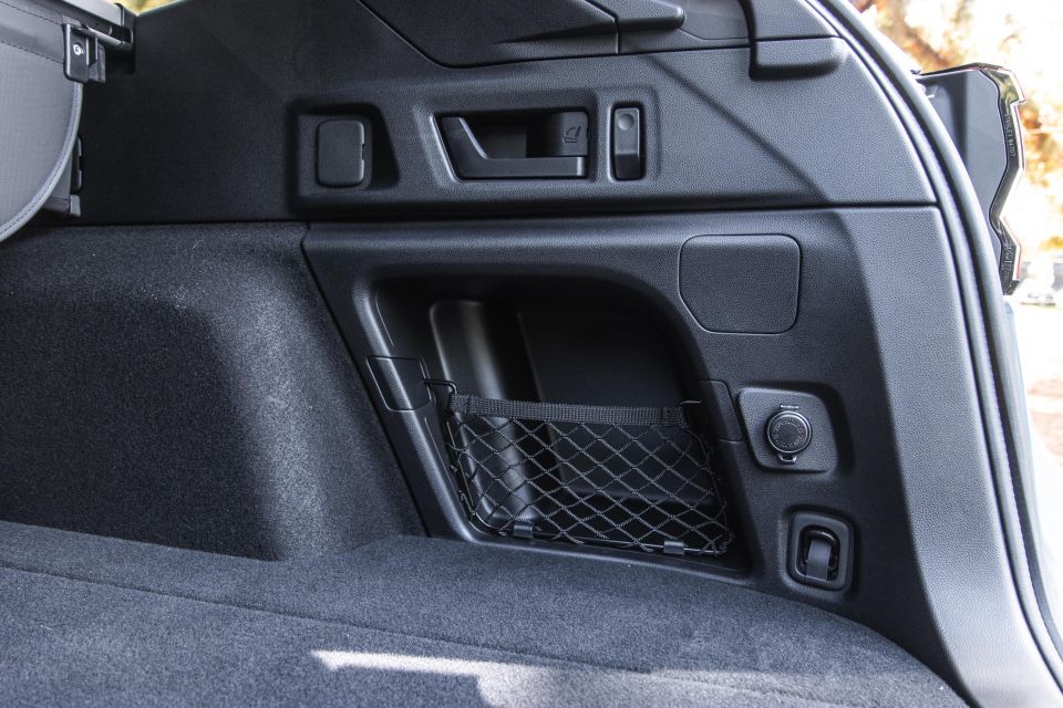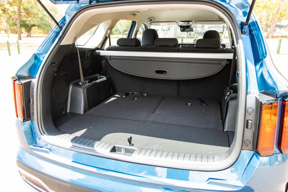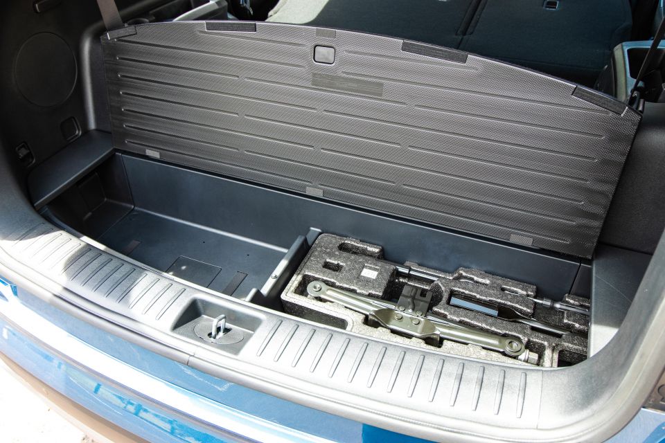 There’s a pull-out cargo blind that can be stored under the main load floor, 12V input (as with the Kia), small netted storage areas, bag hooks, and levers to flip down the back seats. The presence of a full-size spare wheel is once again a welcome reassurance.
