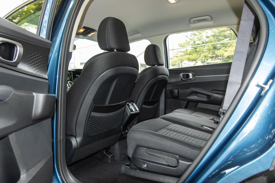 The back doors are nicely trimmed and rear occupants have vents, two USBs, cup-holders and armrests. There’s less foot room than in the Kia and it feels a little less ‘airy’, but again I had ample headroom and legroom. Zero complaints. The seats tilt but are fixed at the base.