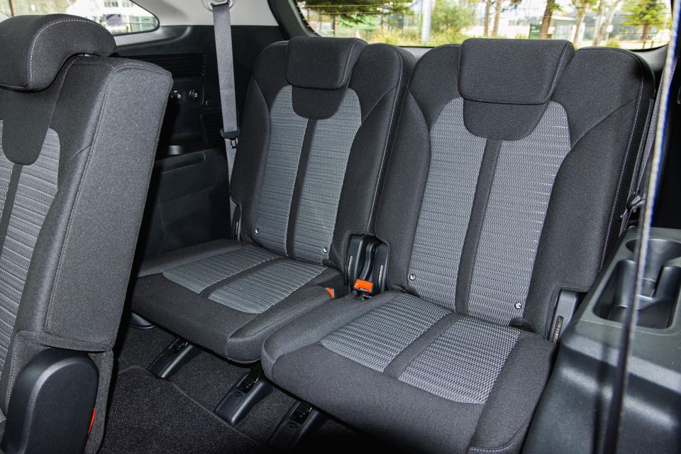 A single button on the kerbside middle-row seat base causes the 60 per cent portion to tilt forward and slide forward at once, to open up access to the rearmost seats. These are best saved for kids. Handy to have, but likely as backups.