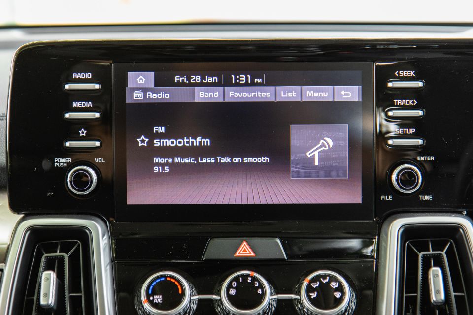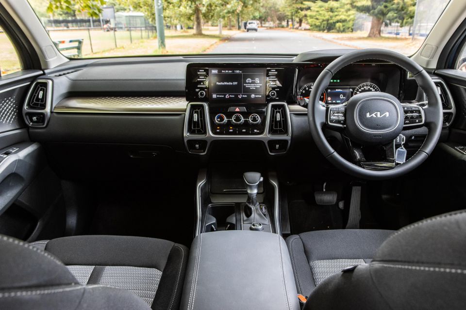 Other Sorentos get a 10.25-inch screen with navigation, but this base S grade makes do with an 8.0-inch screen, phone mirroring for maps, and fewer menus. It all worked well enough, with no Bluetooth or USB dropouts and good sound quality, but it does appear a bit small.