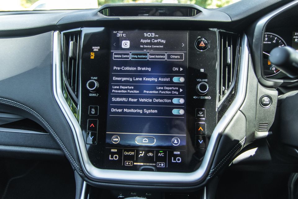 Kia adds a cool Safe Exit Alert system that prevents rear occupants from opening a door into passing traffic, while the Subaru has speed-sign recognition that alerts you to the speed limiter setting, and tells you when the vehicle ahead in traffic departs.