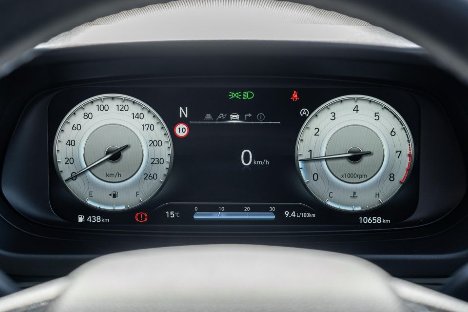 If you flick the N Mode switch you’ll see the cluster transform from the standard Hyundai layout to an N-specific display, incorporating a large centre tacho dial with flame-like animations, flanked by your choice of several widgets including a G-force meter, temperature levels as well as a boost gauge.