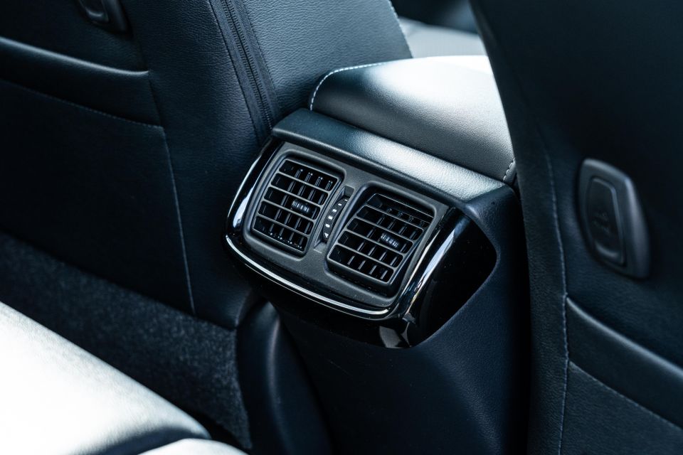 Rear occupants get air vents, a 12V socket, spring-loaded pull-out roof handles, a flip-down centre armrest, and pull-up grab handles on each b-pillar. The backrest folds down, and you flip up the bench seat base to access hidden plastic storage bins.