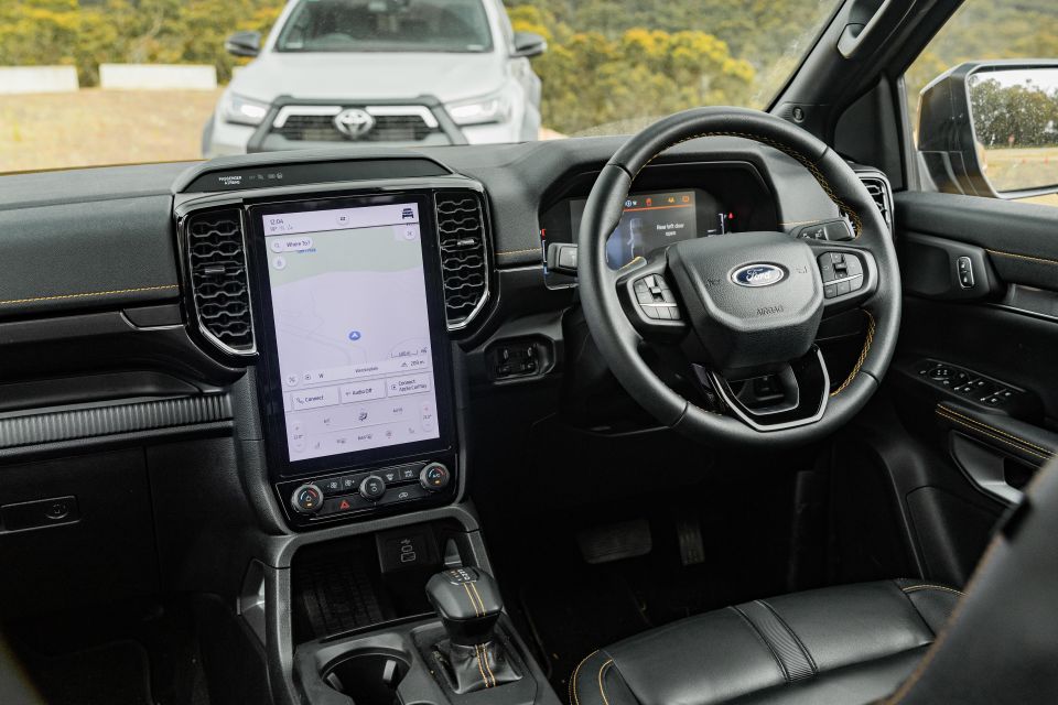 The Ranger’s 10-speed automatic on the face of it seems like a recipe for a busy transmission, compared to the sensible six-speed unit in the HiLux, but the Ford has a narrower peak torque band than the HiLux and the shifts generally felt pretty decisive.