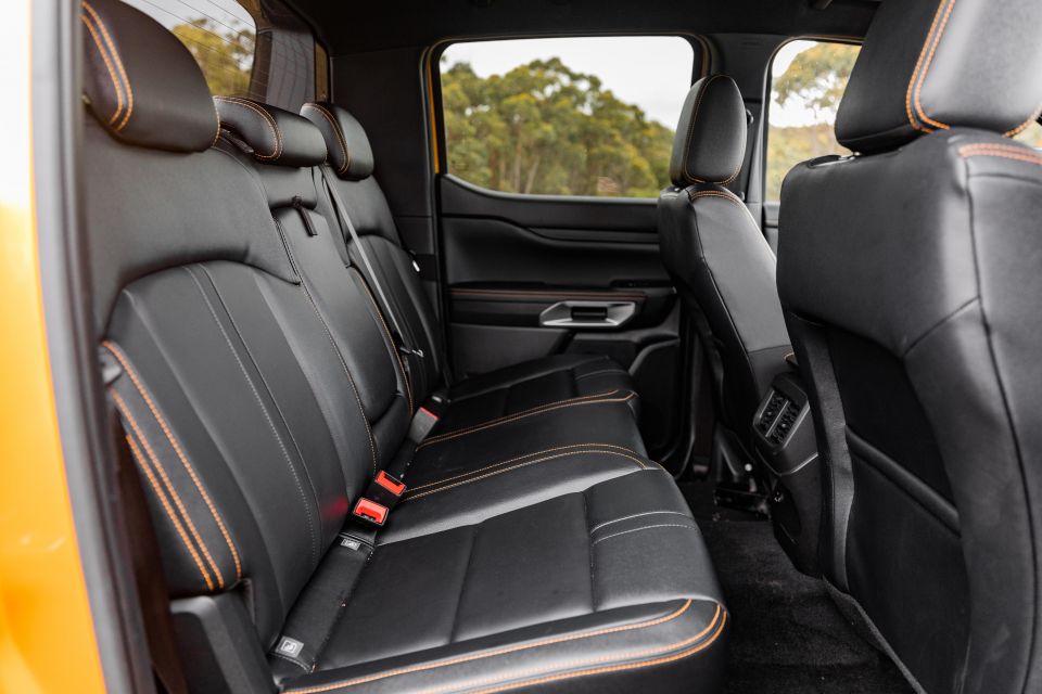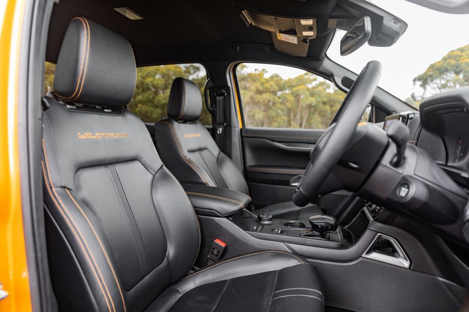 Storage options include a capacious cupholder and glovebox, door bins for bottles and folders, and a phone-friendly backlit open section ahead of the front passenger. The Wildtrak brings a second, higher-mounted glovebox and cup holders along the dash too.