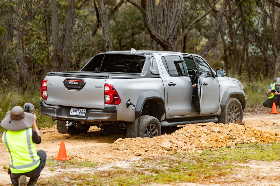 There’s no doubt the HiLux is damn good off-road, and more conventional in its controls: part-time 4×4, a simple mechanical switch to engage 4H and 4L, and excellent low-down tractability. Note also the HiLux has about 30mm more ground clearance.