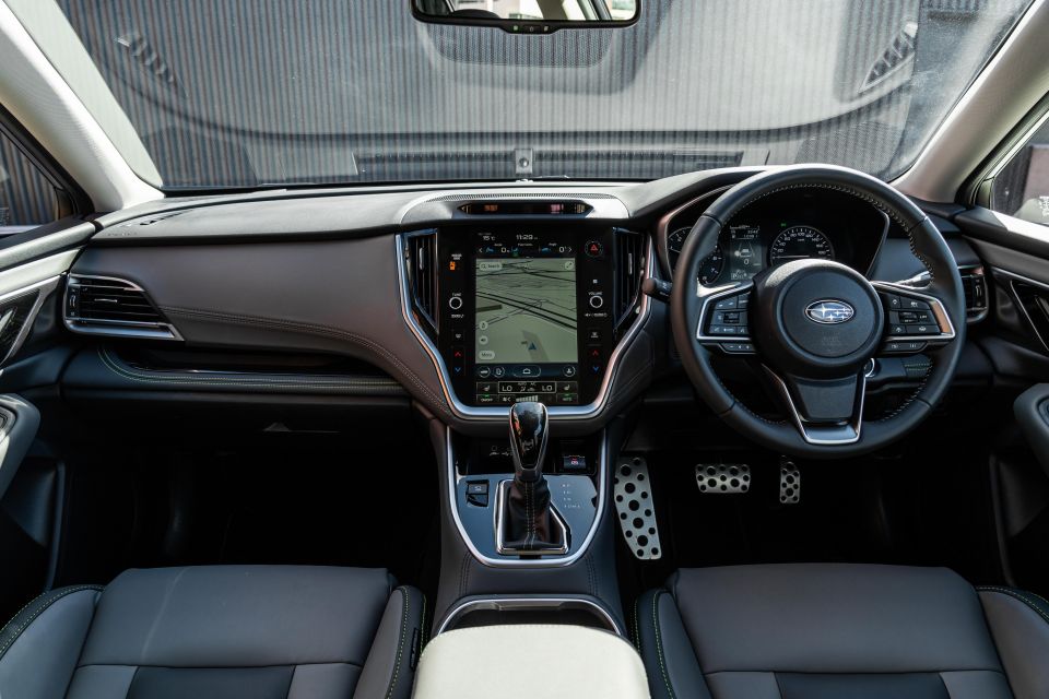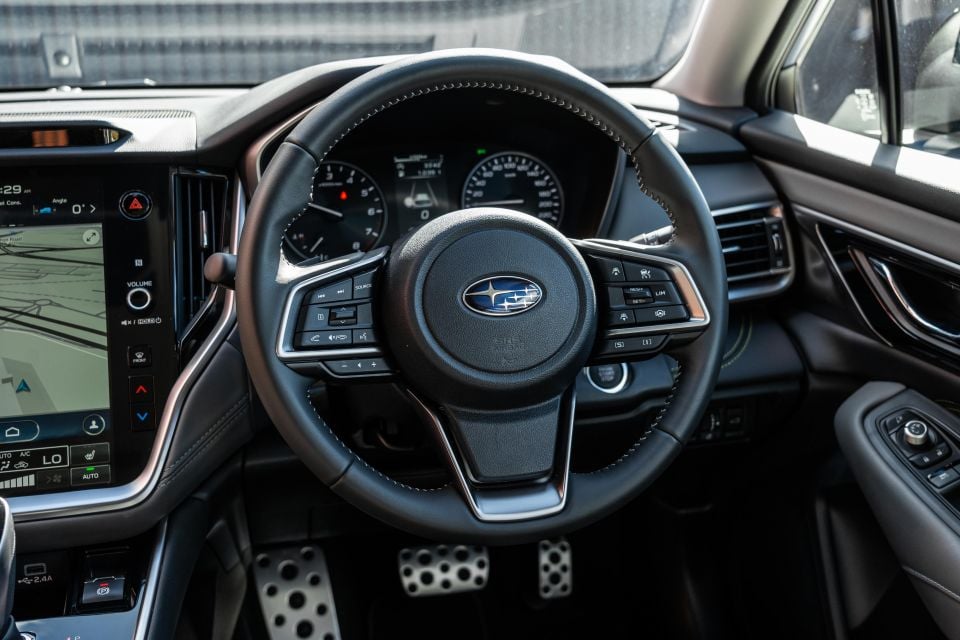 Once you’ve hit the legal limit, the big Subaru settles down to a refined cruise. The engine hums silently away in the background, although there’s still a bit of tyre roar in the cabin on Australian back roads.