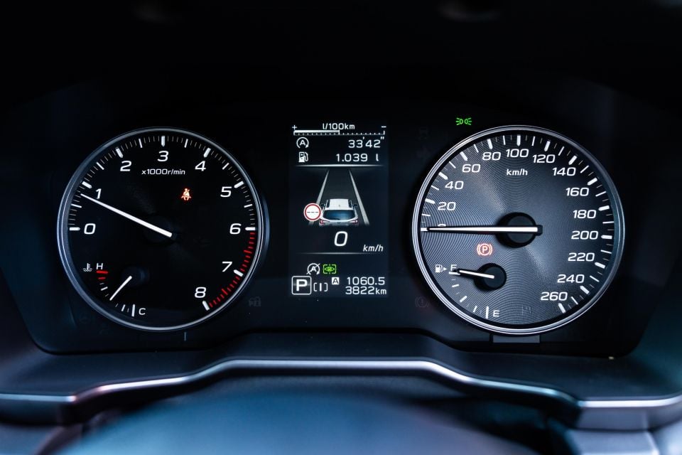 If there’s a complaint, it’s that Subaru is throwing too much information at you. Between the touchscreen, the trip computer atop the touchscreen, and the compact screen between the dials, there’s a lot of numbers on show at any one time, all of them in the same slightly hard-to-read font. The ability to pare it all back would be welcome.
