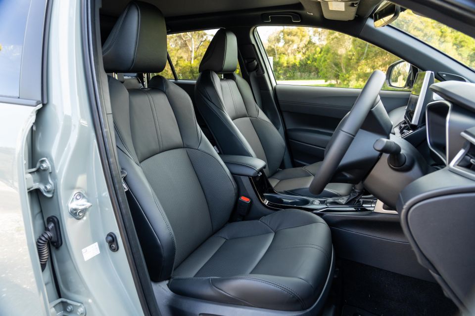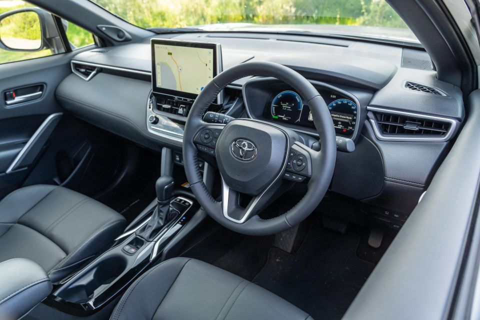 The Corolla Cross offers a bigger boot and an airier interior thanks to the bigger sunroof, and its centre display works by touchscreen, and while it lacks the Mazda’s head-up display offers a slicker new digital cluster.