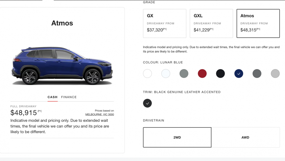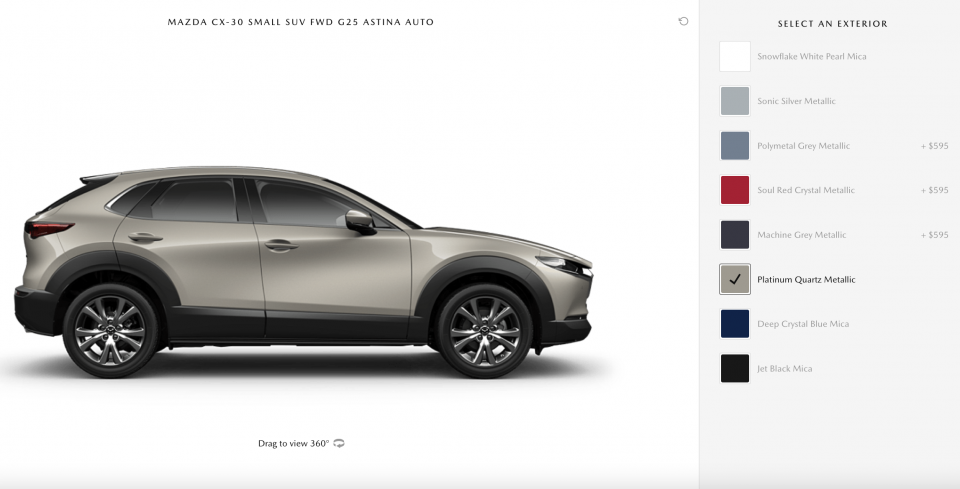 We’ve focused on the Mazda CX-30 Astina and Toyota Corolla Cross Atmos grades. Both come with multiple engine options, and either front-wheel drive (FWD) or all-wheel drive (AWD).