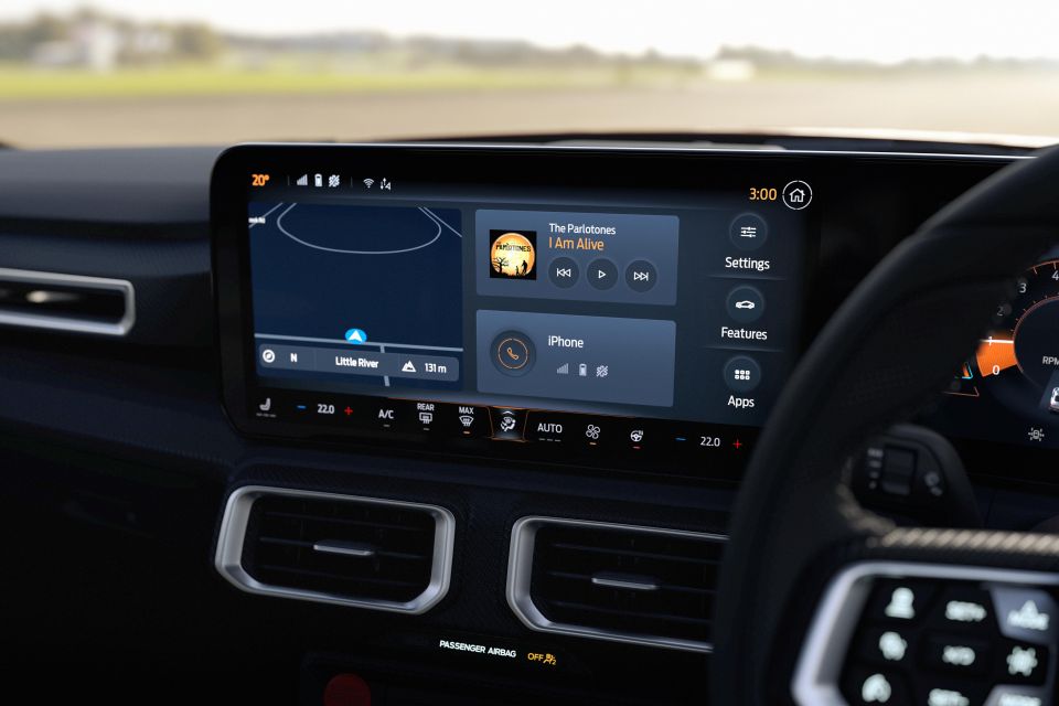 Four extra speakers top off Ford’s tech offering, a selling point given the Z’s old-school roots.
