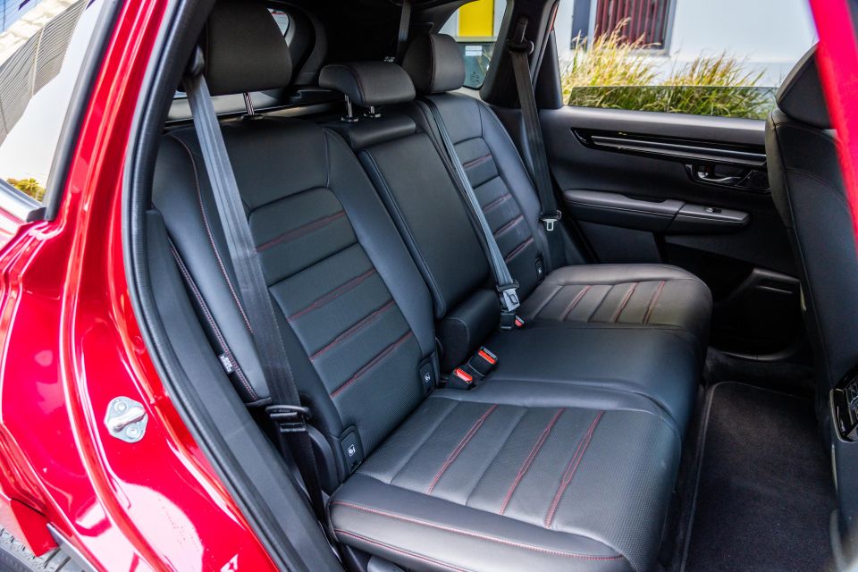 With them in their rearmost position, there’s space for full-sized adults to sit behind full-sized adults with room to spare, and the upright roofline means there’s plenty of headroom – despite the panoramic sunroof in the CR-V RS, which makes the RAV’s look like a cat flap.
