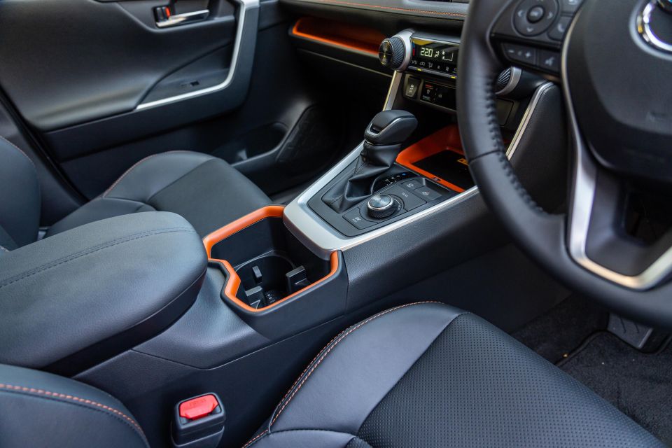 It’s also generously equipped, and feels every bit the quality item the RAV4 does. It’s a bit more demure than the orange-flecked Toyota, although the red stitching on this RS model helps lift things inside.