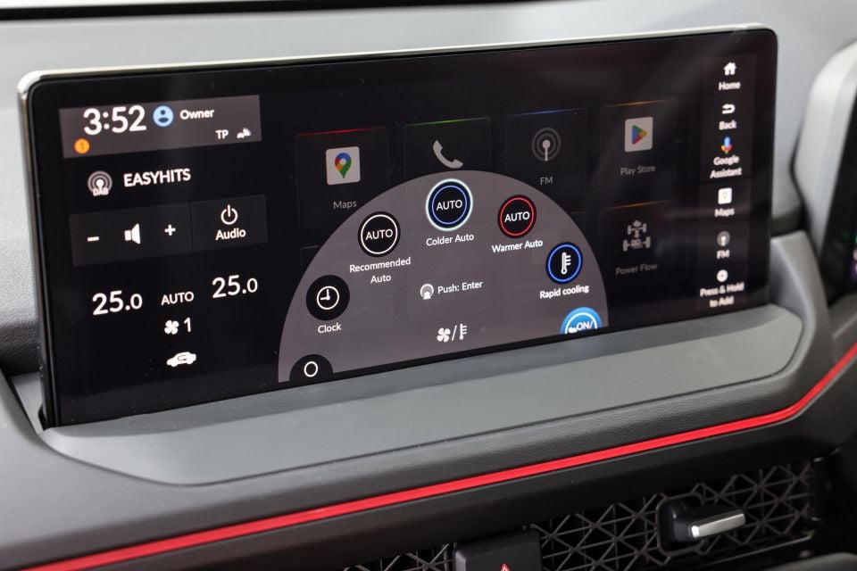 The Honda uses the audio system to reduce unwanted exterior noises via Active Noise Control technology, and has adjustable multi-coloured ambient interior lighting.