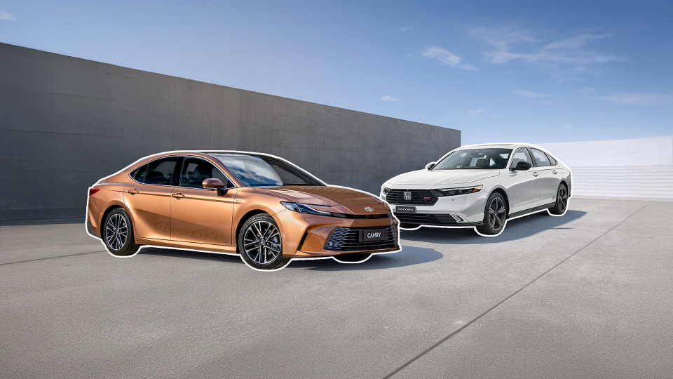 The only minor variations are that the Camry has a digital rear-view mirror, while the Accord has a 360-degree parking camera.