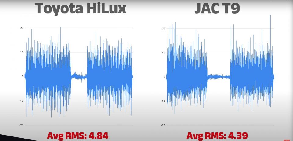Both the JAC T9 Haven and Toyota HiLux SR were loaded with an identical amount of weight, specifically calculated to match the GVM of the HiLux – this meant the Toyota was at its maximum legal loaded capacity.