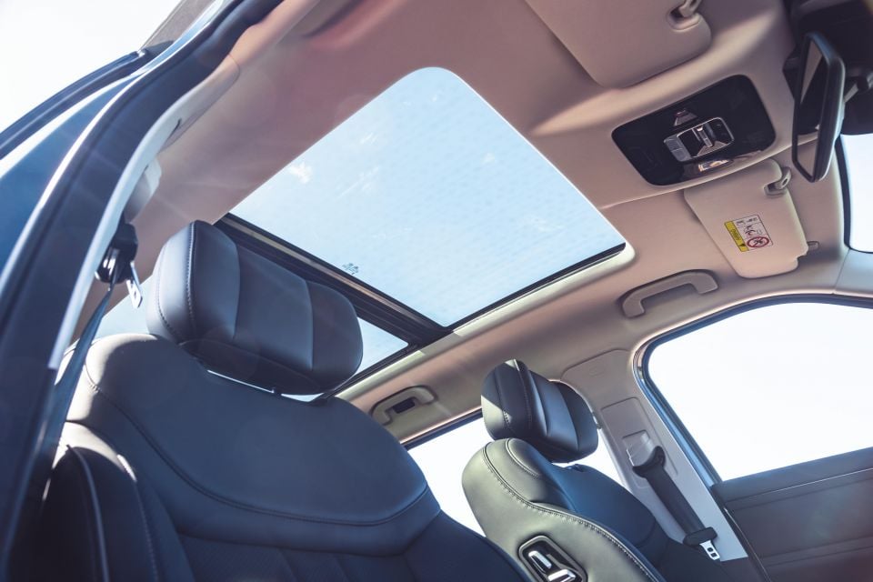 It looks good and the quality of materials present well, with soft-touch faux leather and brushed aluminium highlights throughout. And it feels spacious and airy thanks to the panoramic glass roof and lighter-coloured roof liner.