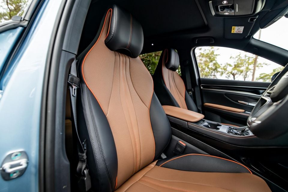 While the Sealion 6 has a larger 12.3-inch digital instrument cluster (compared to 10.25-inch in the J7), its central 12.8-inch touchscreen that can be rotated to either landscape or portrait configurations is smaller than the J7’s fixed 14.8-inch unit.