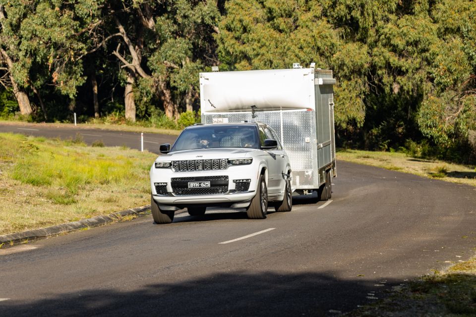 This 1600kg trailer dynamometer is wirelessly linked up to a computer that lets the operator adjust the degree of resistance force as measured in kilonewtons (kN) – in our tests we set it to 3kN, which simulates a fairly steep ascent, but one that should be within each SUV’s abilities.
