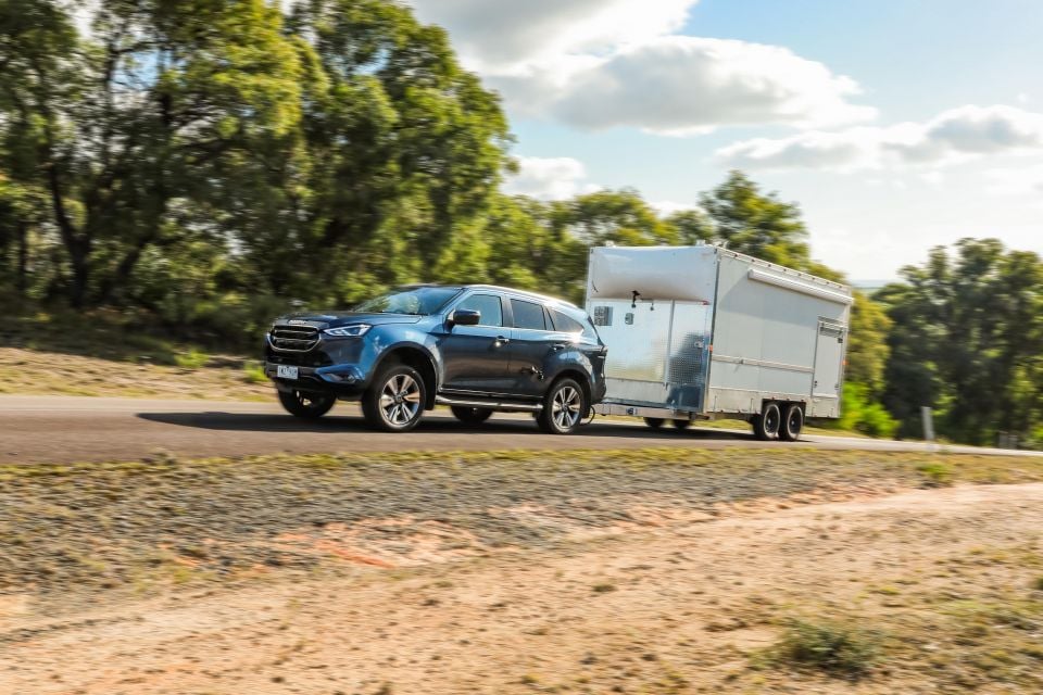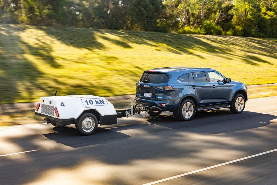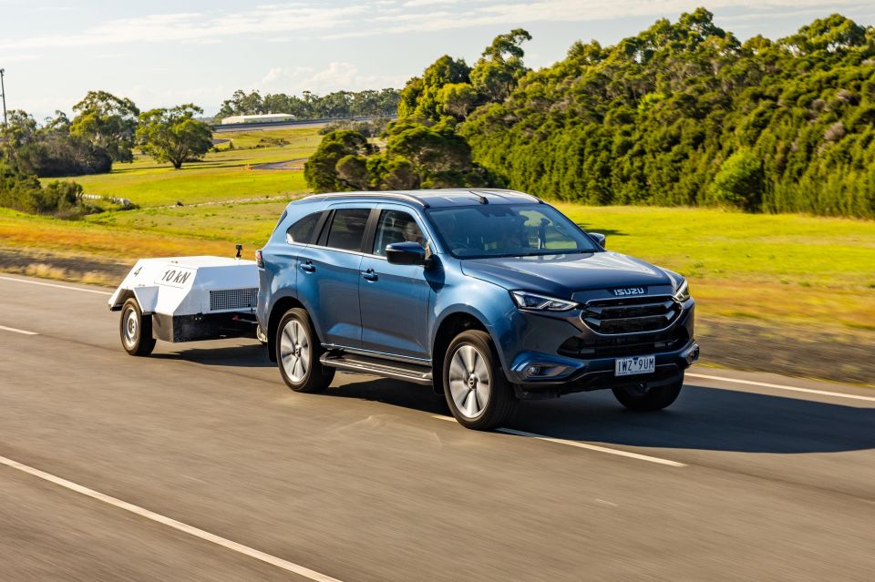 We hitched each SUV to a 2800kg trailer and tackled a 5km road representative of regional Australia, including a 15 per cent climb, plus a descent to test engine braking, and some choppy bitumen to test the ride quality.