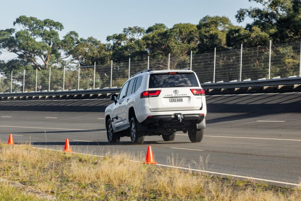 Performance from the LX600 was excellent in our drag race, and that translated to towing. The petrol engine packs a formidable punch, making light work of our 2800kg trailer. The slippery surface did have the car breaking traction at the front axle, however.