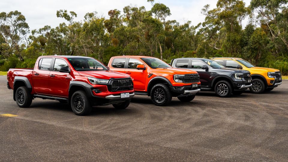 You can see what’s coming here, right? To see how the most powerful HiLux you can buy in Australia stacks up alongside its big rival from the Blue Oval, we lined the GR Sport up against a Ranger Bi-Turbo, a Ranger V6, and a Ranger Raptor.