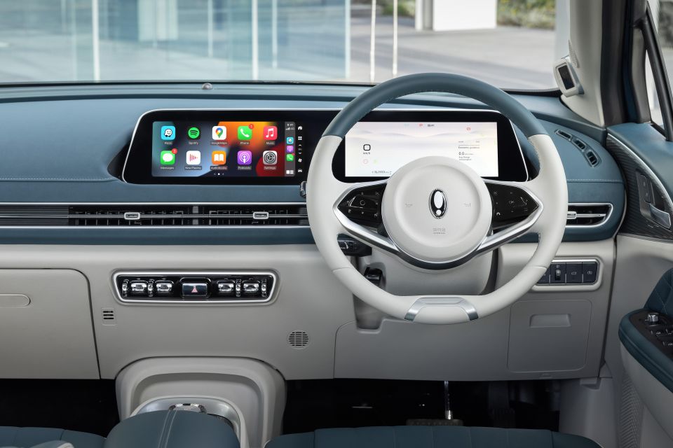 A little like the BYD, the GWM Ora’s interior as pictured makes use of blue and cream inside, which love-or-hate is certainly different to the norm.