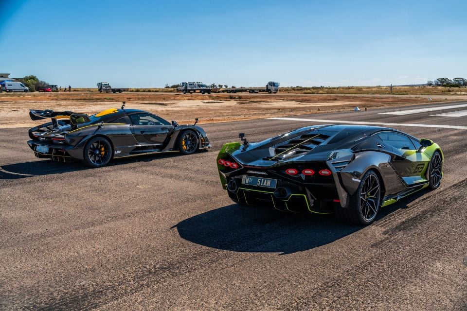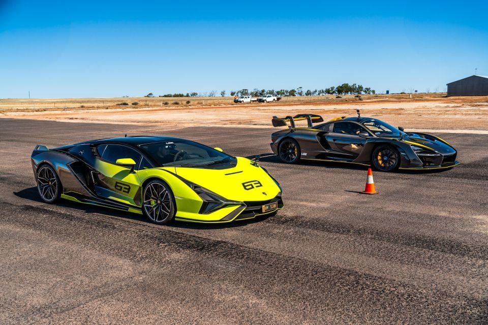It’s time for the heavy hitters. We’ve gone to the top shelf to put together one of our closest drag race results to date. It’s the $5 million Lamborghini Sian up against the carbon-bodied McLaren Senna hypercar.